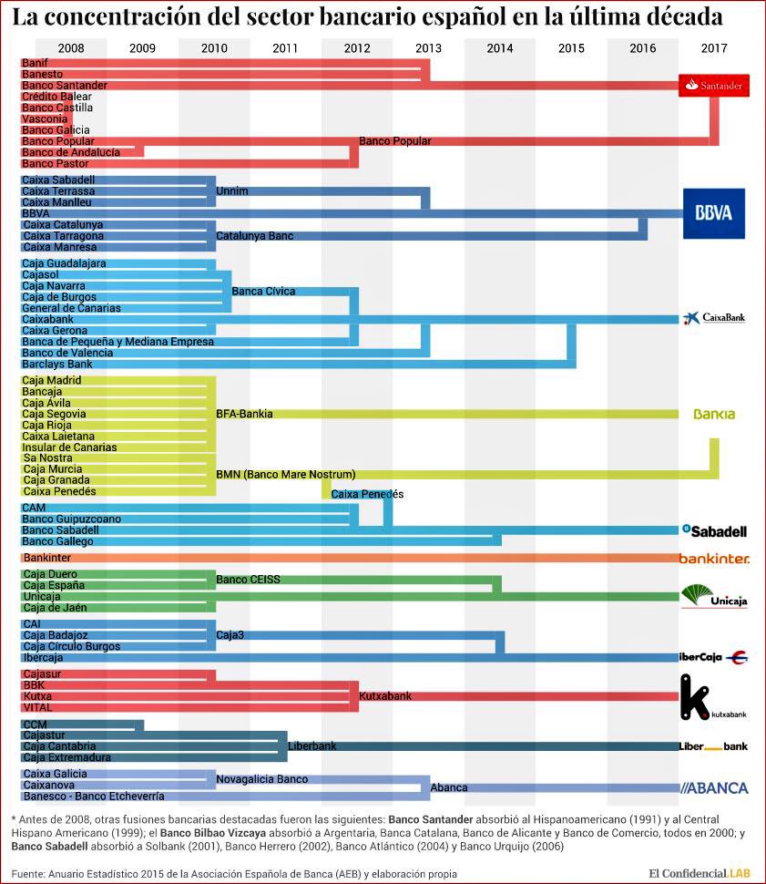 De 62 a 11: la concentración del sector bancario español (2008-2017)