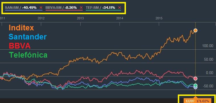 Inditex ha maquillado la rentabilidad del IBEX 35 durante 5 años.