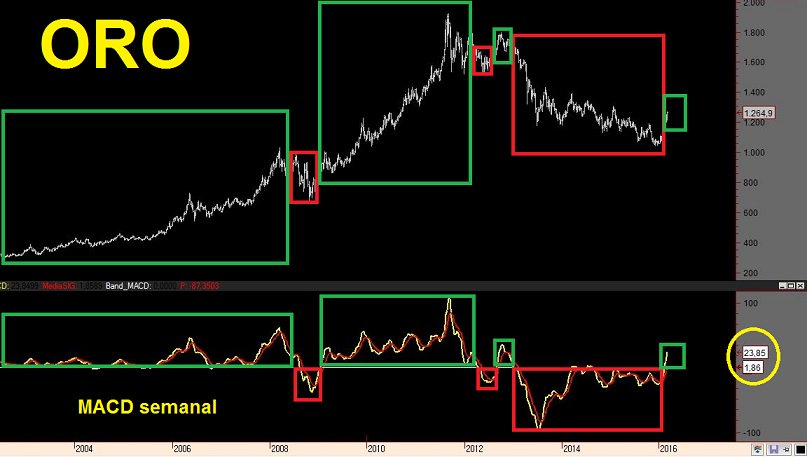 Después de 3 años y 2 meses MACD del ORO supera zona de 0.
