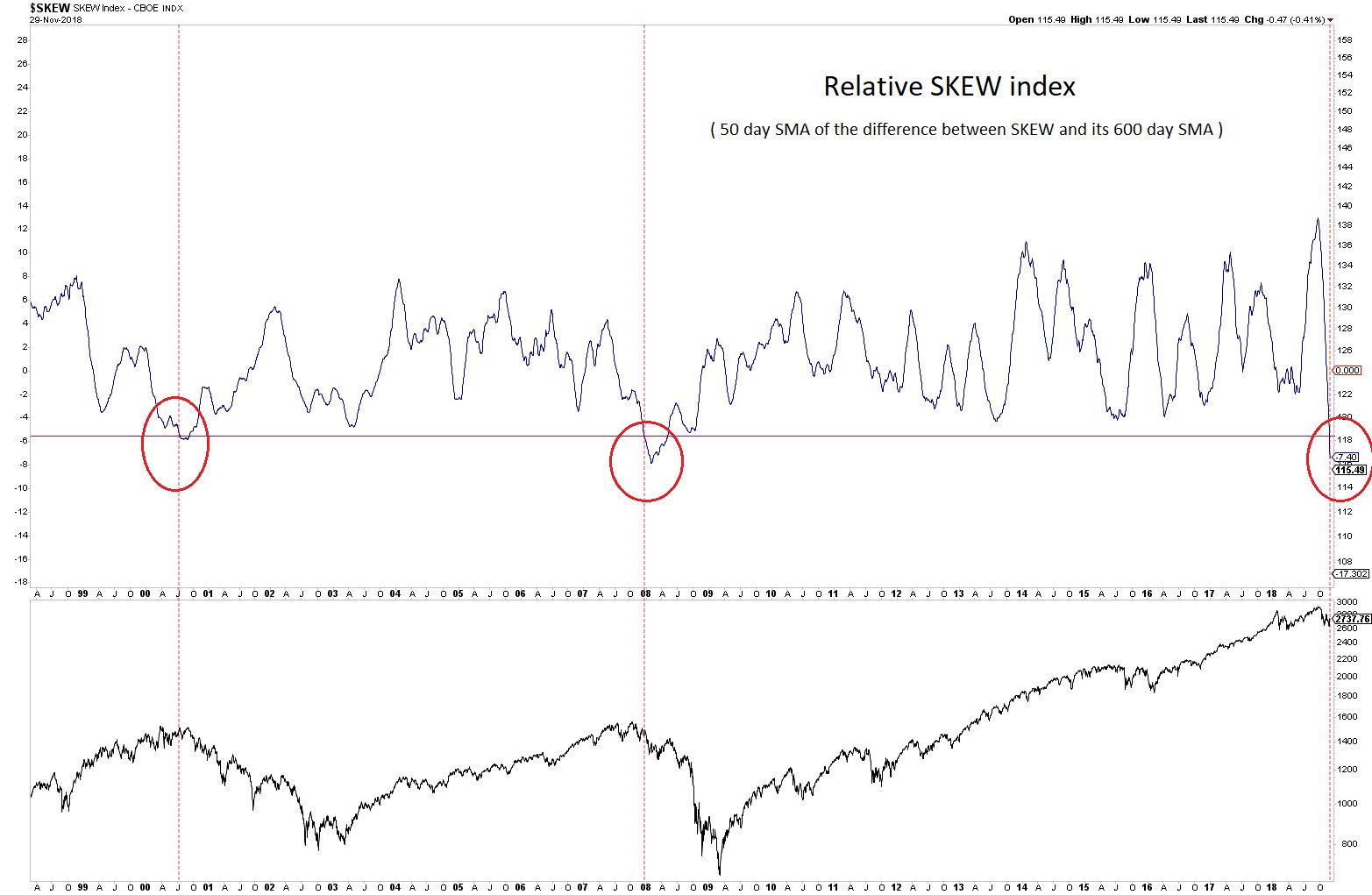The SKEW index is a measure of potential risk in financial markets. The Skew Index measures perceived tail-risk in the S&P 500. Tail-risk is a change in the price of the S&P 500 or a stock that would place it on either of the tail ends, or the far edges of the normal distribution curve.